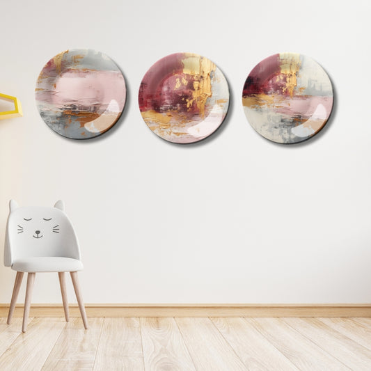 Set of 3 Golden Strokes Abstract Home Décor Wall Plates