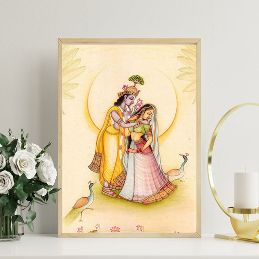 Divine Romance Radha and Krishna Canvas Painting Framed Wall Art