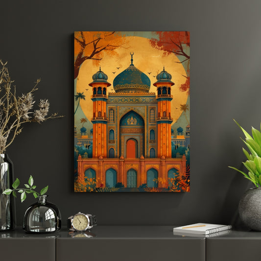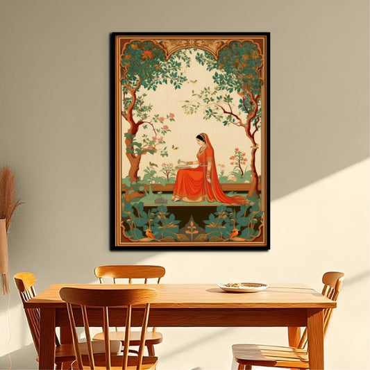 Mughal Garden Grandeur Canvas Painting Framed Wall Art