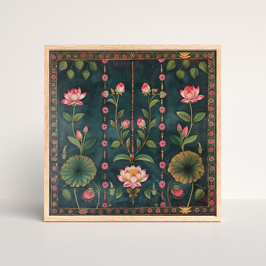 Divine Lotus and Cows Pichwai Canvas Painting Framed Wall Art