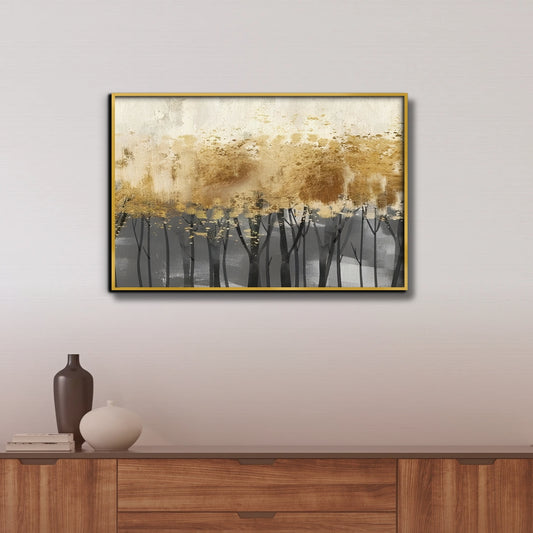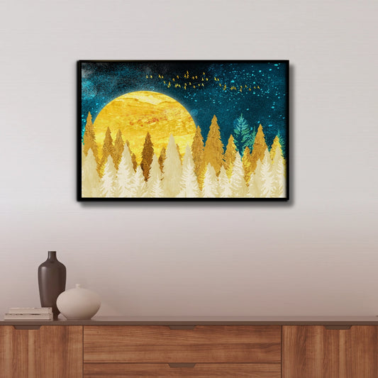 Golden Moonlit Forest Canvas Painting Framed Wall Art