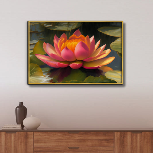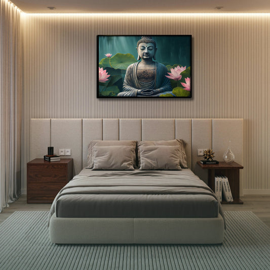 Buddha Ji and Lotus Zen Bloom Canvas Painting Framed Wall Art