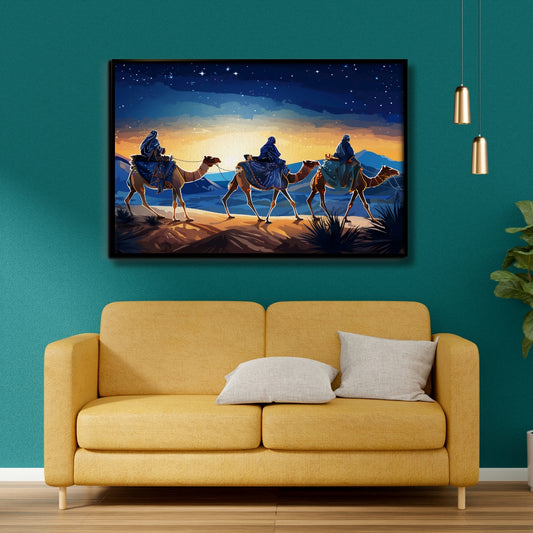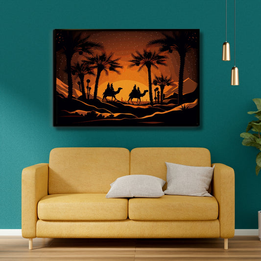 Camel Riders Desert Night Canvas Painting Framed Wall Art