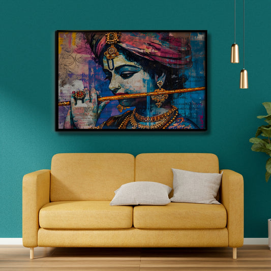 Divine Harmony Lord Krishna Canvas Painting Framed Wall Art