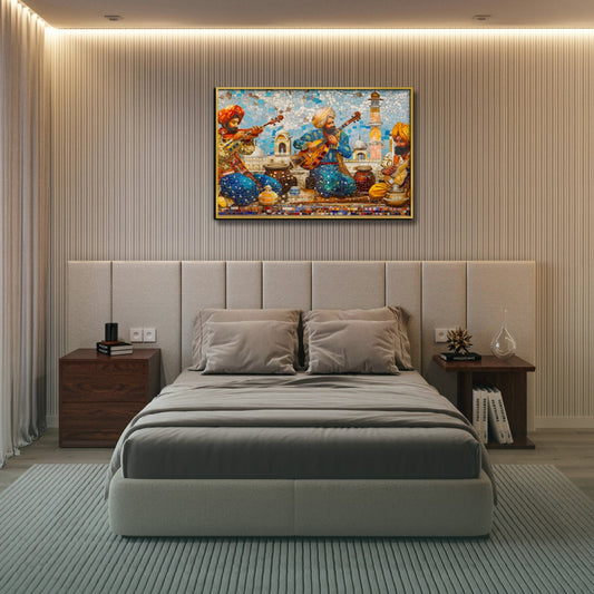 Cultural Symphony Folk Music Canvas Painting Framed Wall Art