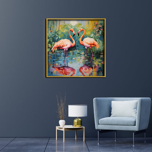 Flamingo Serenity Canvas Painting Framed Wall Art