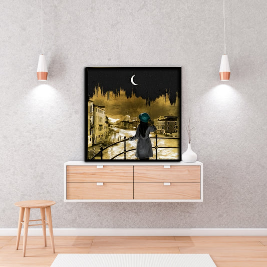 Golden Moonlit Venice Canvas Painting Framed Wall Art