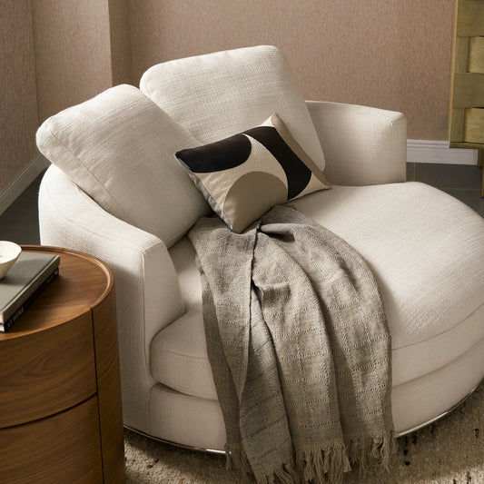 Aurora Curve Round Performance Fabric Swivel Armchair