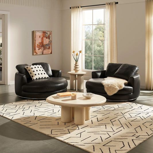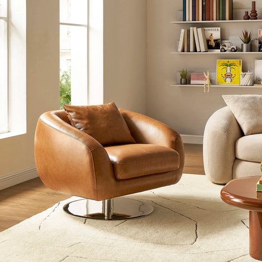 Aurora Curve Round Performance Leather Swivel Armchair Smoke Black