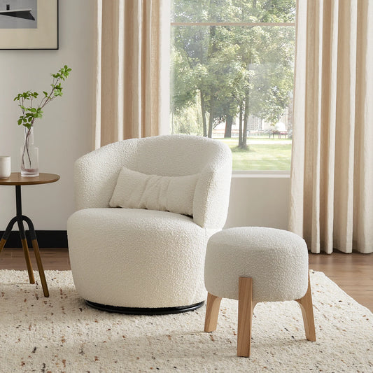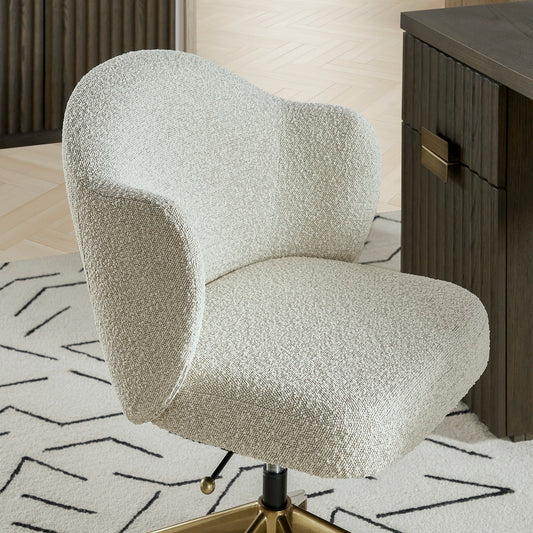 Imperial Spin Bouclé Swivel Chair in Snow White