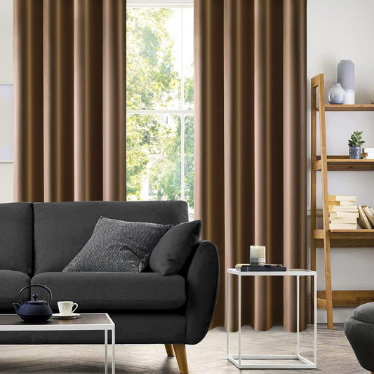 Set of 2 Faux Silk Blackout Drapes Curtains Brown