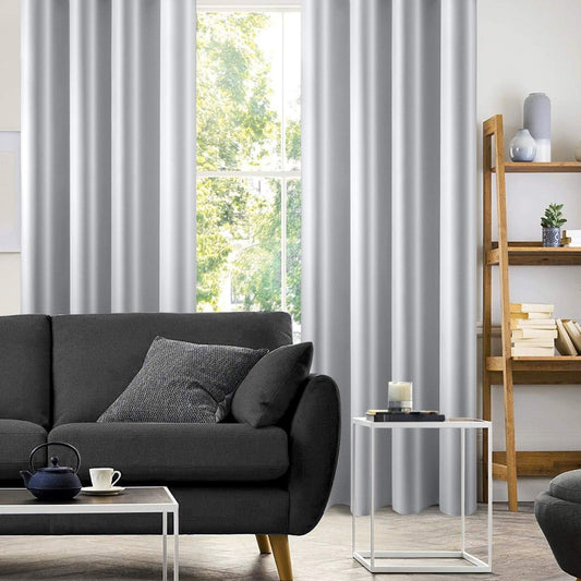 Set of 2 Faux Silk Blackout Drapes Curtains Silver Grey