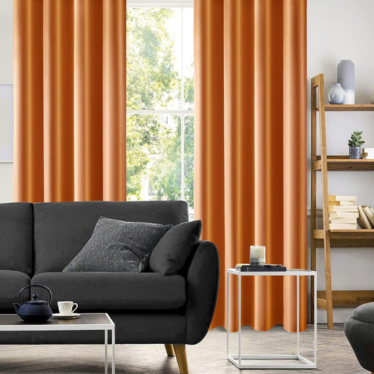 Set of 2 Faux Silk Blackout Drapes Curtains Orange