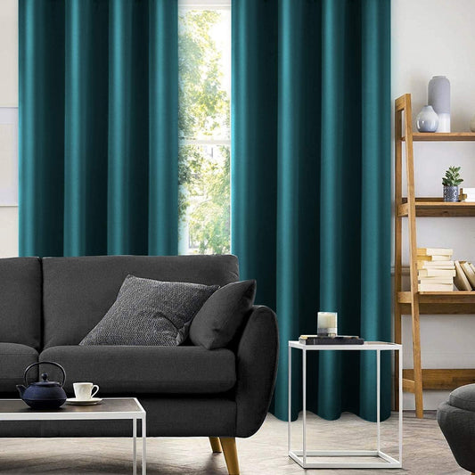 Set of 2 Faux Silk Blackout Drapes Curtains Teal