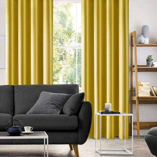 Set of 2 Faux Silk Blackout Drapes Curtains Mustard Yellow