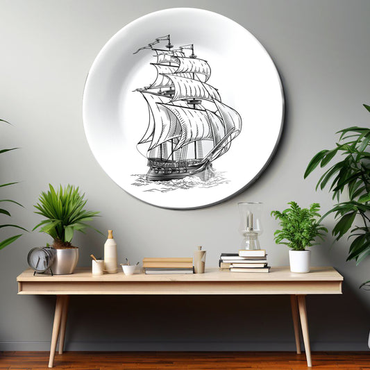 Vintage Ship Pirate Sail Boat Decorative Wall Plate