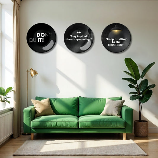 Set of 3 Motivational Quotes Monochrome Wall Plates