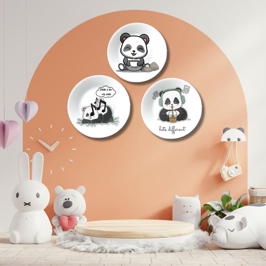 Set of 3 Rest, Play, Feast Panda Moments Wall Plates