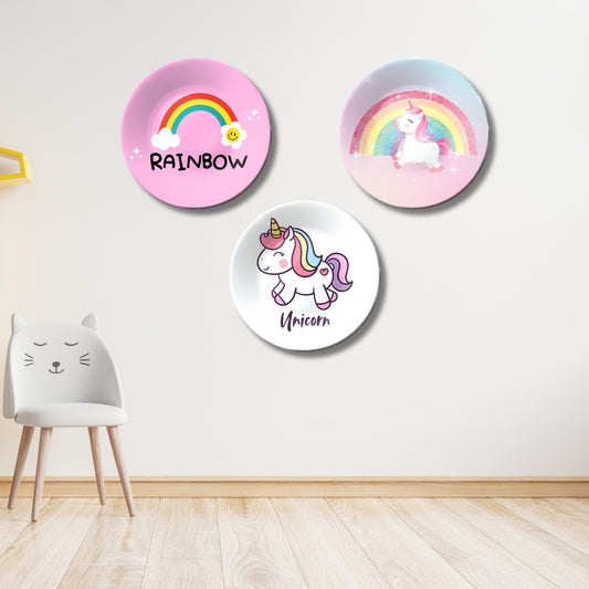 Set of 3 Rainbow and Unicorn Kids Room Décor Wall Plates