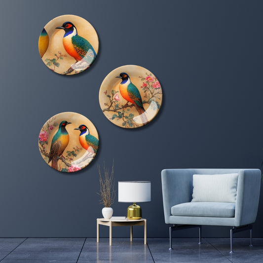 Set of 3 Assorted Nature Theme Decorative Ceramic Wall Plates Art Décor