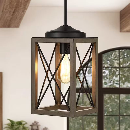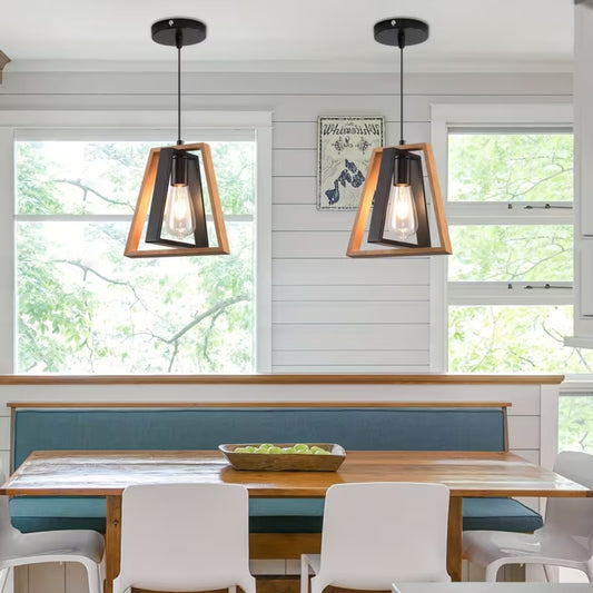 Set of 2 Noir Frame Pendant Solid Wood Lamp
