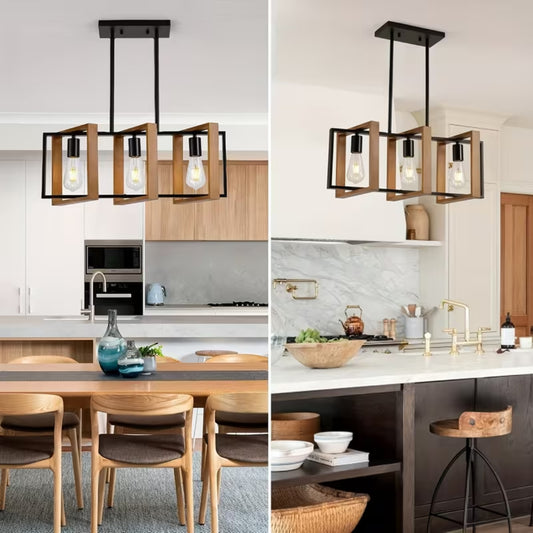 Noir Linear Trio Pendant Solid Wood Lamp