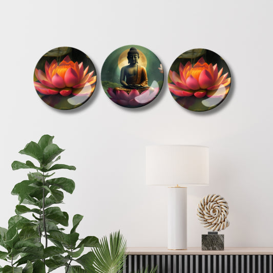 Set of 3 Meditating Buddha and Lotus Home Décor Wall Plates