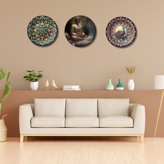 Set of 3 Peacock Whispers Buddha Home Décor Wall Plates