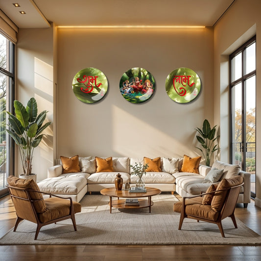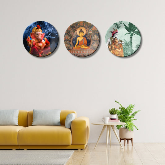 Set of 3 Divine Blessings Ganesha , Maa Lakshmi, & Saraswati Home Décor Wall Plates