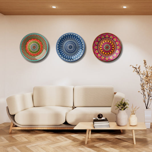 Set of 3 Artistic Mandala Radiance Decorative Wall Plates