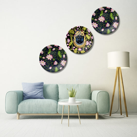 Set of 3 Shrinathji Lotus Sacred Blessings Decorative Wall Plates