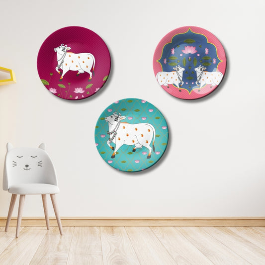 Set of 3 Pichwai Cows Sacred Grace Home Décor Wall Plates