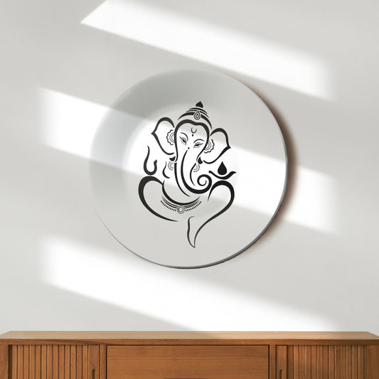 Ganesha Black and White Minimalist Decorative Wall Plate