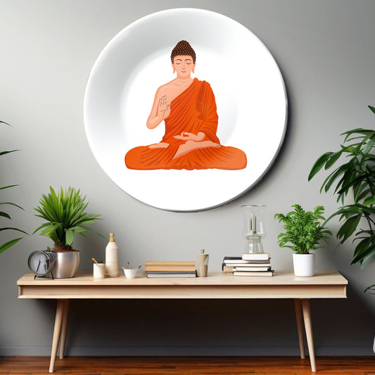 Orange and White Buddha Decorative Wall Plate