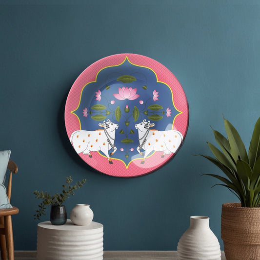 Pichwai Cow and Lotus Home Decor Ceramic Wall Plate