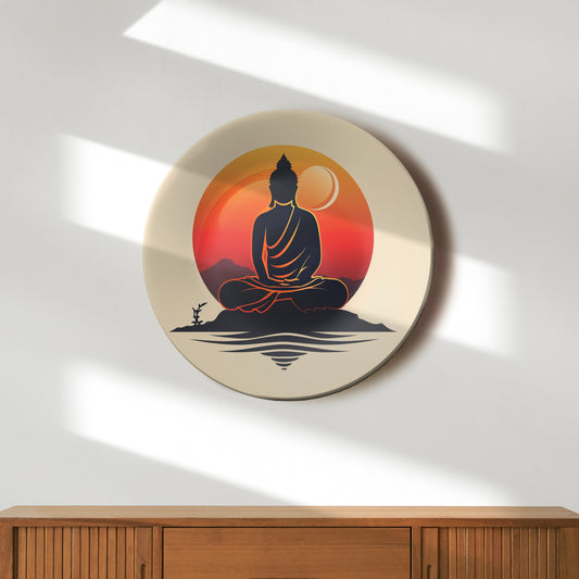 Meditating Buddha Orange Decorative Wall Plate