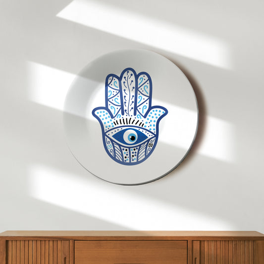 Hamsha Evil Eye Hand Blue Minimalist Decorative Wall Plate