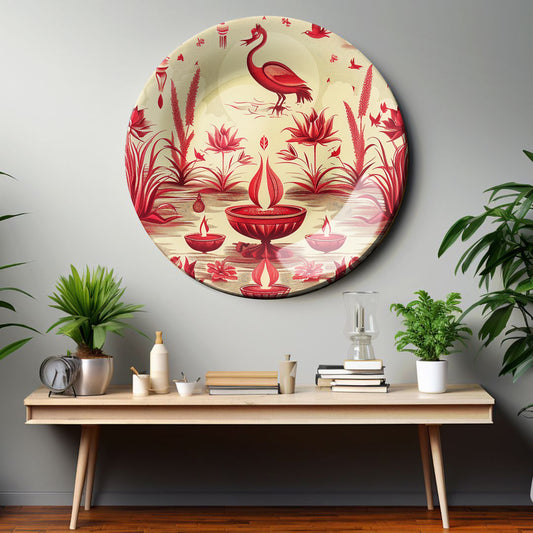 Crimson Reflections Home Decor Ceramic Wall Plate