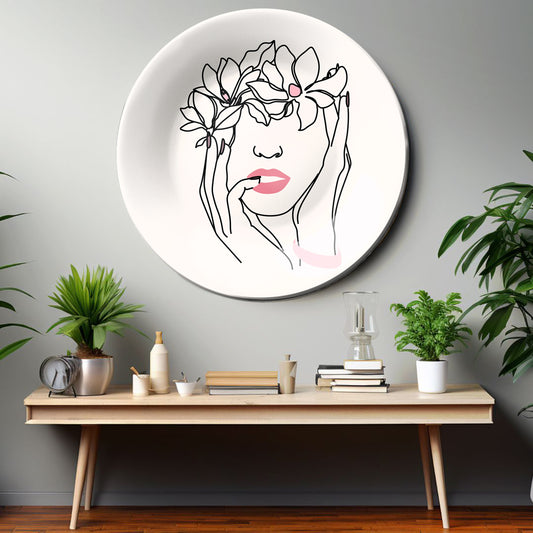 Artistic Aura Contemporary Floral Line Art Ceramic Decorative Wall Plate