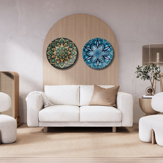 Set of 2 Aadhya Mandala Divine Chakra Ceramic Wall Plates Home Décor