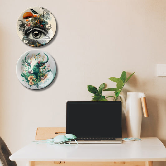 Set of 2 Celestial Insight Ceramic Wall Plates Home Décor