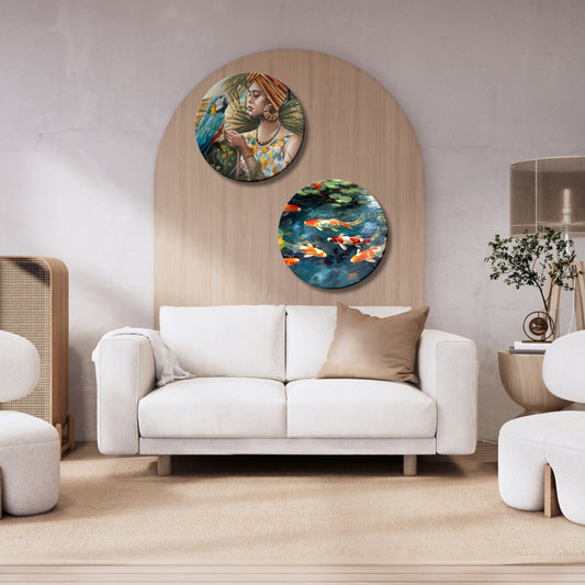 Set of 2 Vastu Koi Fortune Flow Ceramic Wall Plates Home Décor