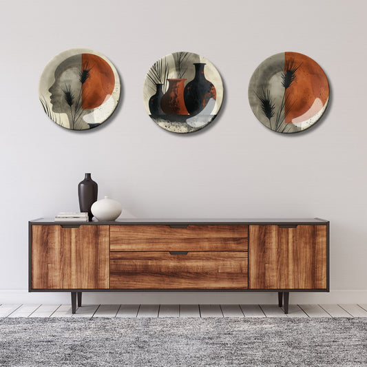 Set of 3 Abstract Terracotta Echoes Decorative Wall Plates