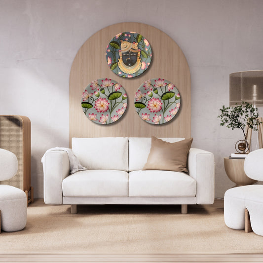 Set of 3 Shrinathji Lotus Sacred Blessings Decorative Wall Plates
