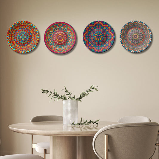 Set of 4 Vibrant Mandala Kaleidoscope Collection Ceramic Decorative Wall Plates