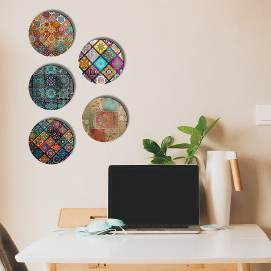 Set of 5 Boho Mosaic Vintage Tile Art Ceramic Decorative Wall Plates
