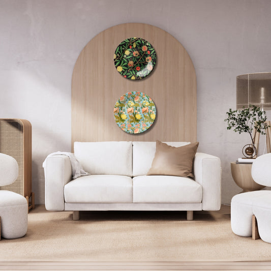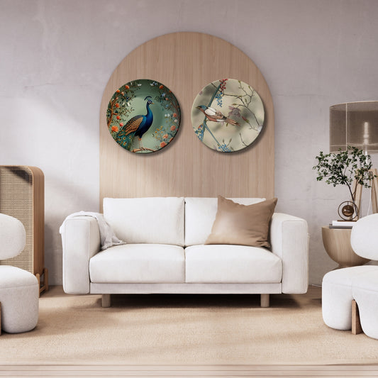 Set of 2 Royal Peacock & Songbird Symphony Ceramic Wall Plates Home Décor
