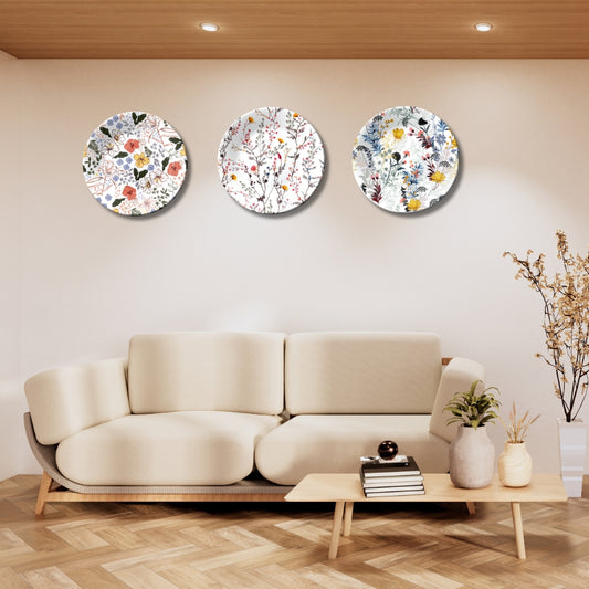 Set Of 3 Botanic Whispers Ceramic Wall Plate For Décor