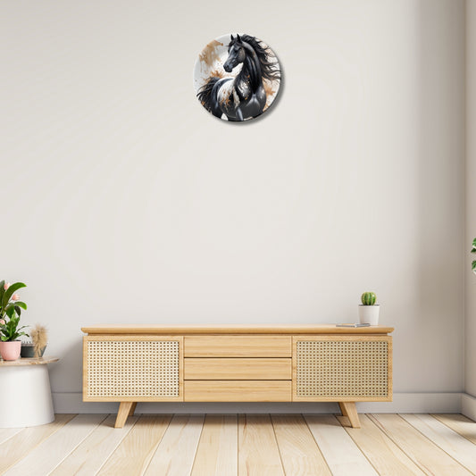 Royal Black Horse Ceramic Decorative Wall Plate For Home Décor