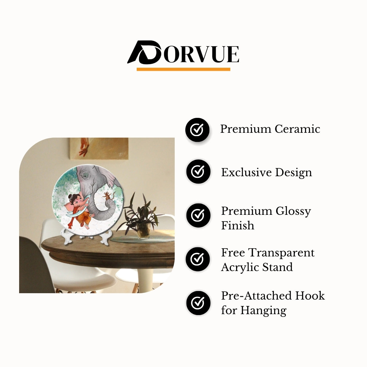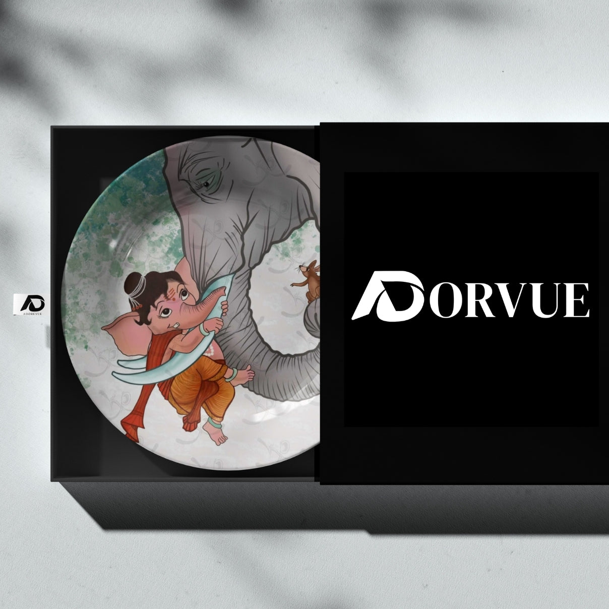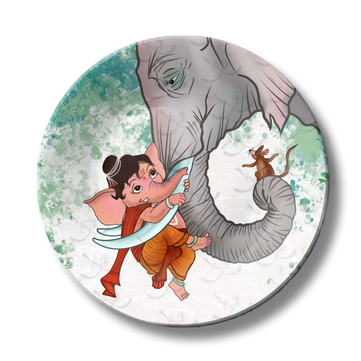 Bring joy, positivity, and playful charm to your little one’s room with the Ganesha Playing With Elephant Decorative Wall Plate. Featuring an adorable illustration of Lord Ganesha joyfully interacting with a baby elephant, this artwork captures innocence, happiness, and divine protection in the sweetest way. The soft colors and cute detailing make it perfect for nurseries, kids’ bedrooms, playrooms, or gifting on special occasions. A perfect blend of culture, cuteness, and creativity, this wall plate brings blessings, protection, and positive vibes to your child’s room.